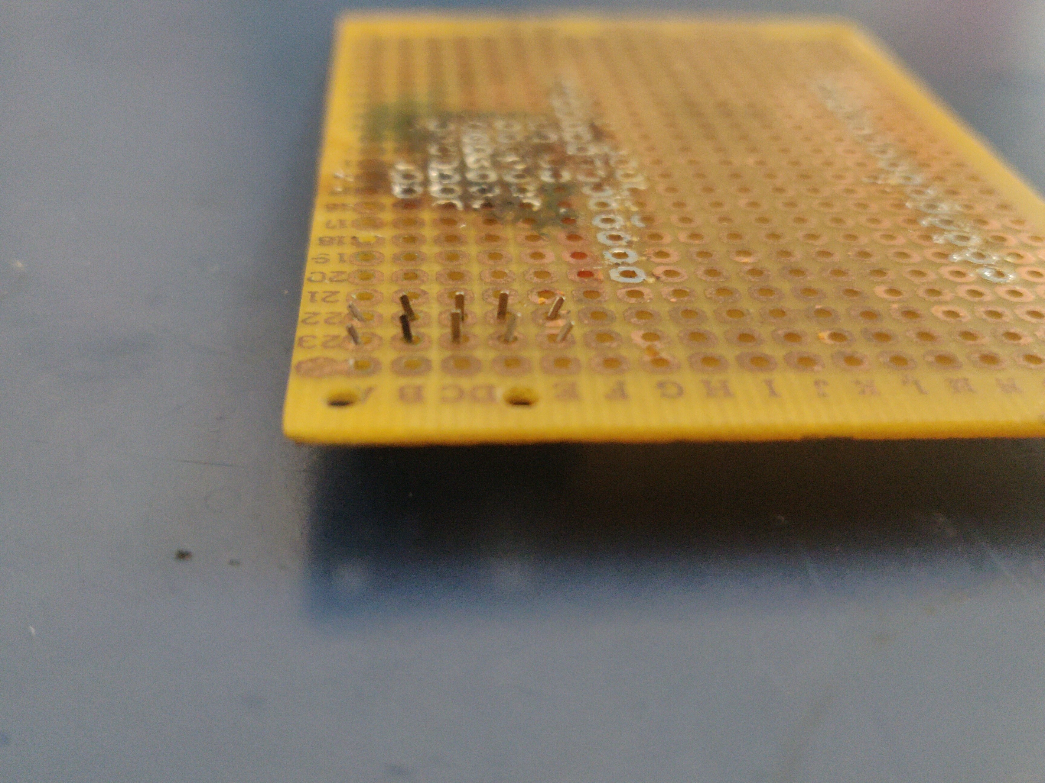 Based on this a simple breakout board can be built to provide a USB-A socket to plug in a different USB storage device. This can be used to quickly swap out different operating systems or boot arrangements when maintaining or fixing the device. What you need to keep in mind however is that the connector has a 2mm pitch not the typical 2.54mm. This makes it tricky to use a pre-made perfboard but it's still possible to stick in a 2mm female header forming what is termed a "hedgehog pattern" by electronics professionals π.