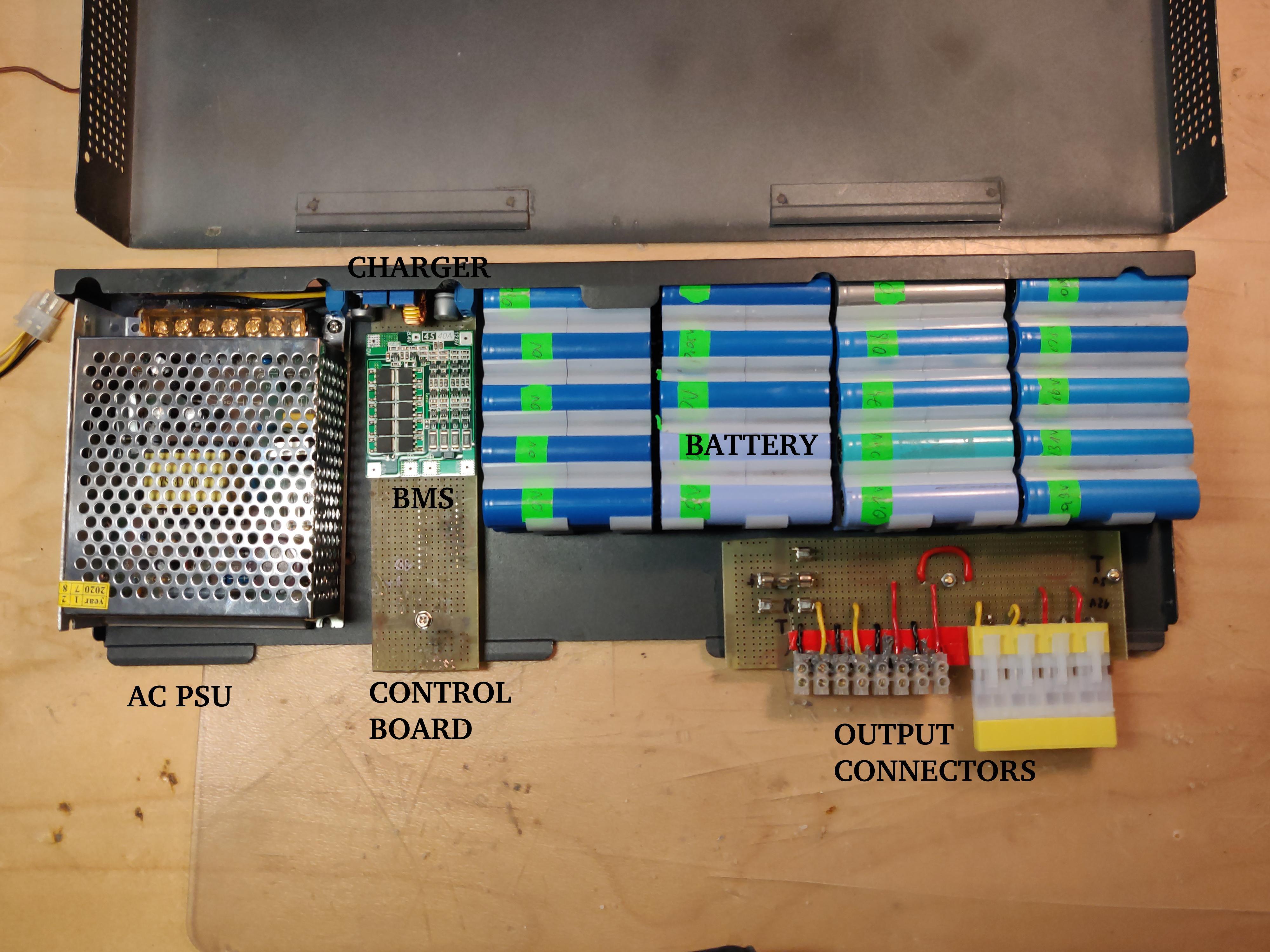 I have decided to build a UPS that would power my home network equipment rack using lithium-ion 18650 cells.